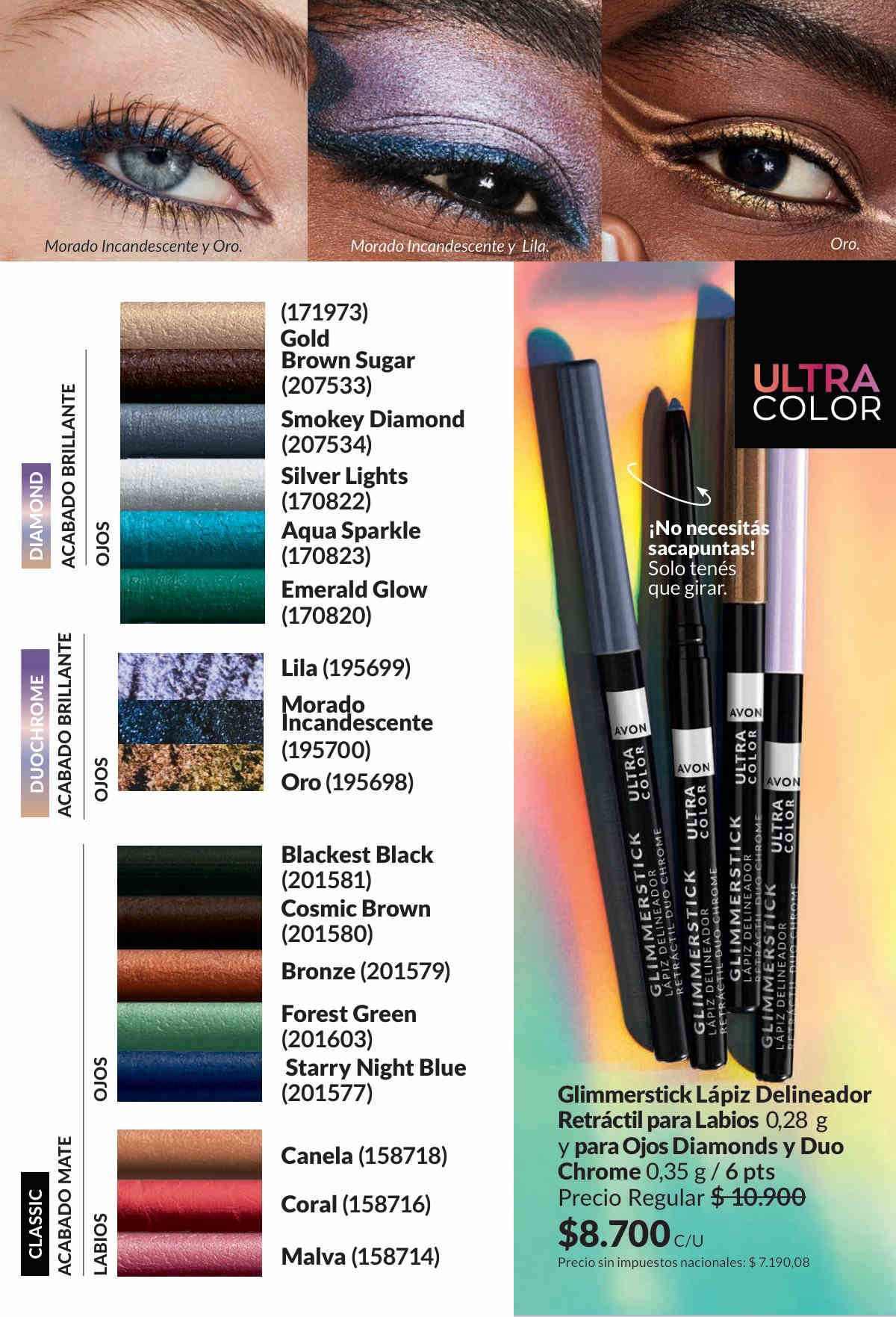 Maquillaje Avon Mark. Epic Lip Transform Lápiz Labial - Transforma tus labios con efectos y diseños increíbles. White It Up - Aclara e ilumina tonos oscuros. Black It Up - Oscurece y otorga profundidad a los tonos claros. Warm It Up - Transforma cualquier color en uno más cálido. Hologra FX - Crea un efecto tridimensional holográfico y tornasolado. 3,6 g.