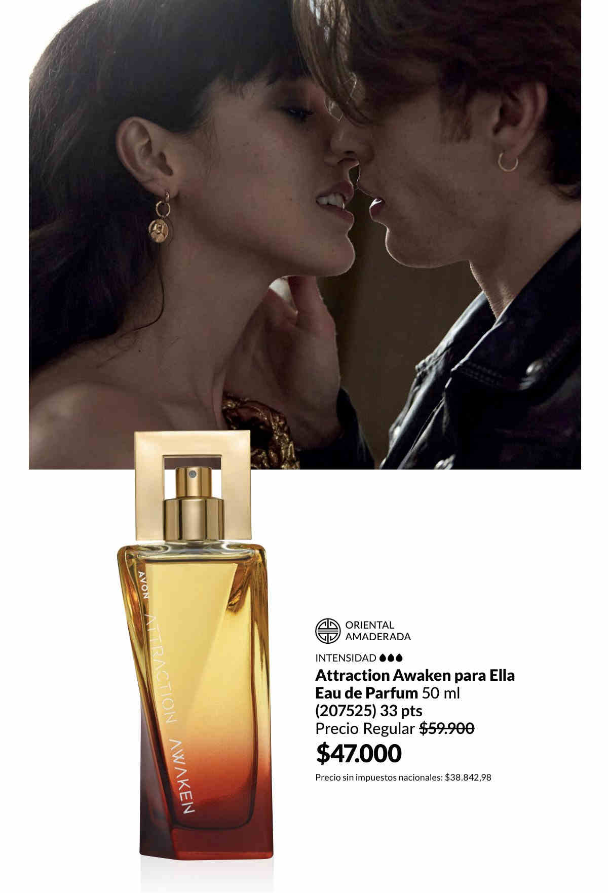 Perfumes Avon Mesmerize Flanker Red Para Ella - Revela tu encanto y misterio de día y de noche, con esta mezcla intrigante de exótico jengibre, opulenta peonía roja y sensual pachulí. Nota Olfativa: Oriental Amaderada. 50 ml.