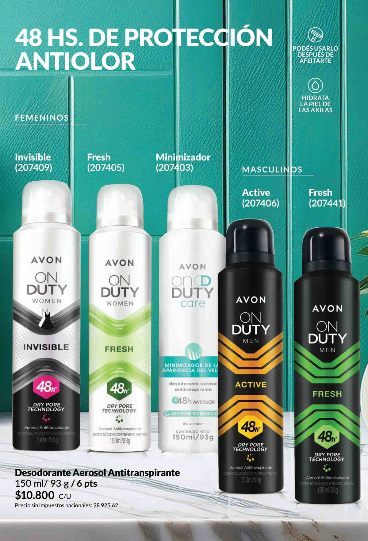 Avon On Duty Invisible Women Desodorante Aerosol - No deja residuos visibles en tu piel ni manchas blancas en tu ropa negra. Antitranspirante con la eficiente tecnología Dry Pore, protección por 48 horas. Cuanto más se necesite, más protege.