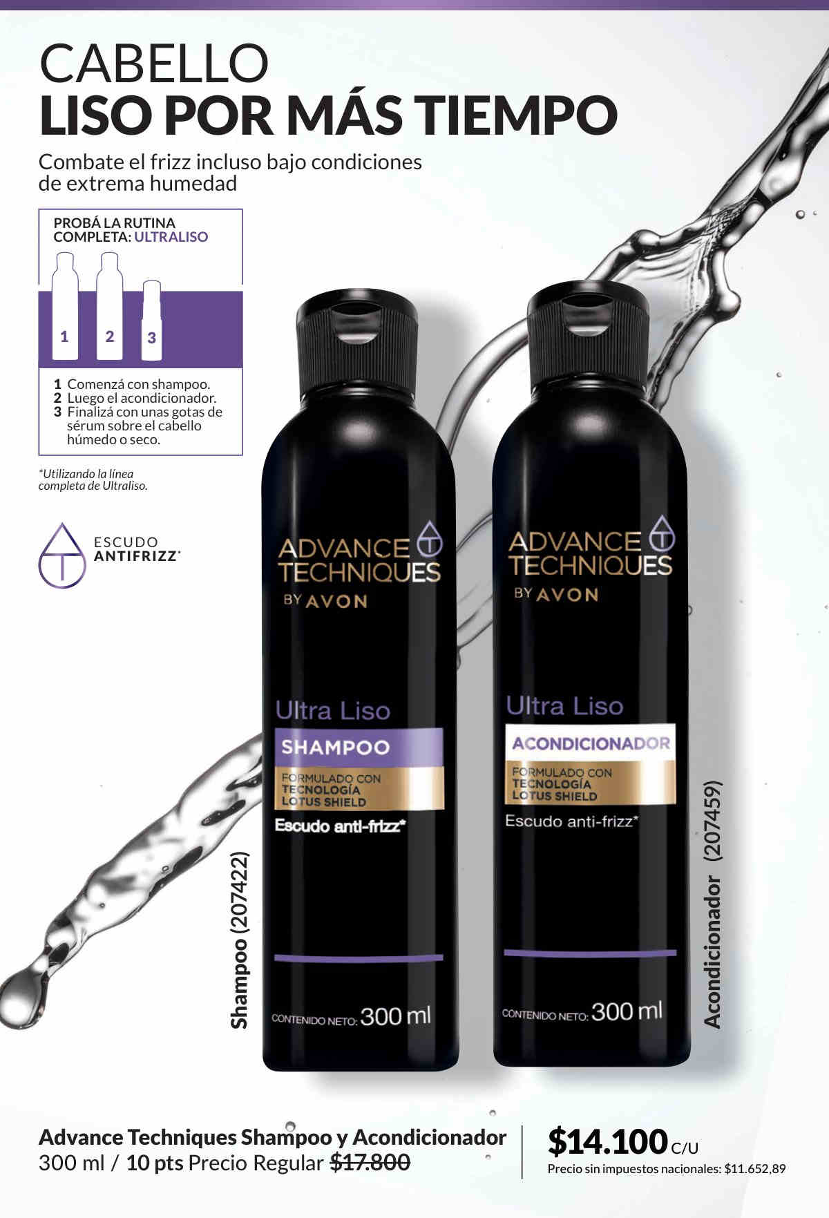 Cosméticos Avon Lotus Shield Loción Fluída Eliminadora de Frizz Control Prolongado - Ayuda a formar una película bloqueadora de humedad que mantiene el cabello controlado, suave y sedoso, independientemente de las condiciones meteorológicas. Aplicar una pequeña cantidad sobre el cabello húmedo y peinar.